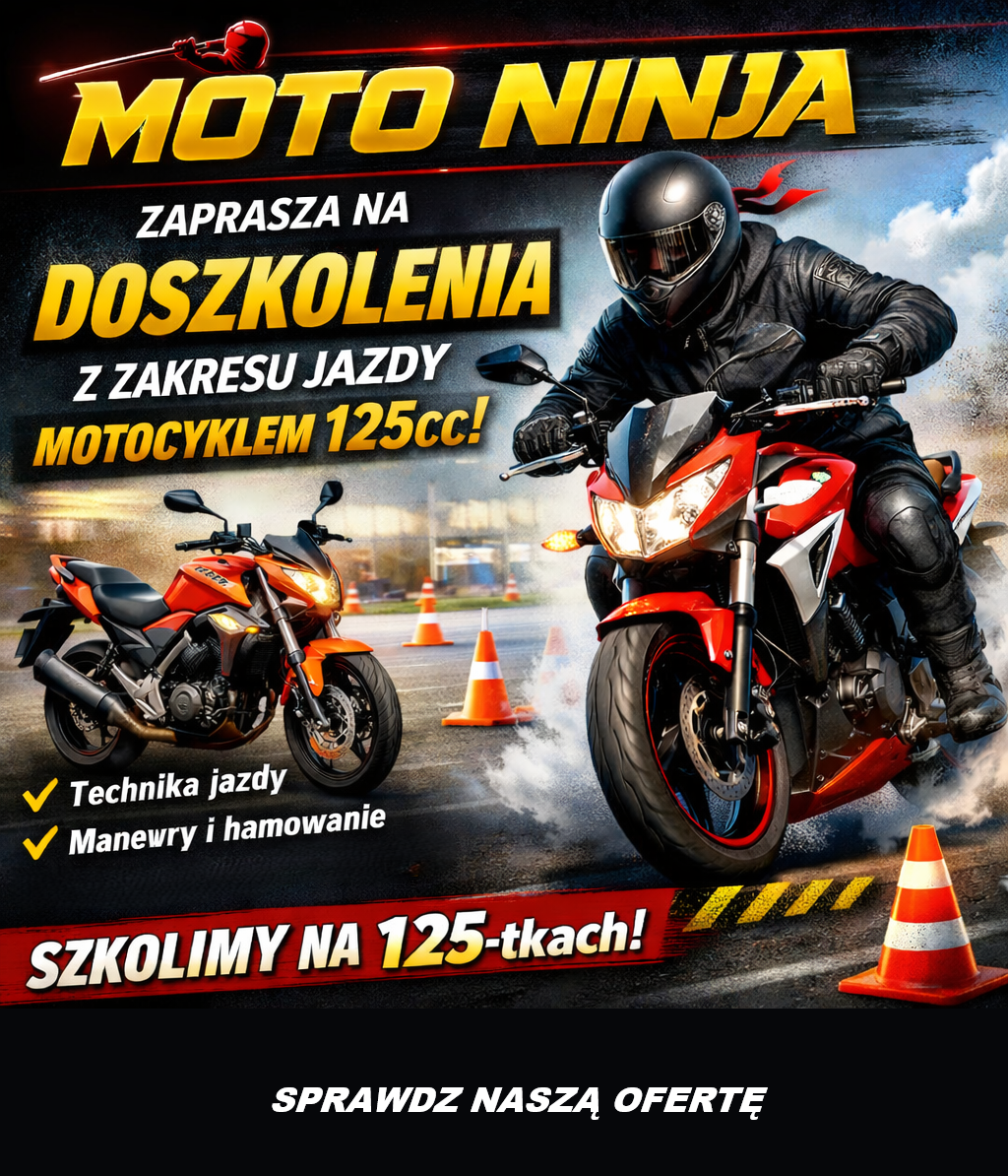 Tak, prowadzimy kursy na motocykl klasy 125cc dla posiadaczy prawa jazdy kat. B od minimum 3 lat.